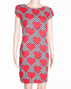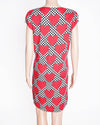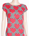 Love Moschino A-line shift dress showcases a playful and bold aesthetic with its all-over red heart print set against a striking black-and-white checkered background. Designed with a classic crew neckline and short sleeves, the dress balances fun, youthful charm with a flattering silhouette. Lightweight and comfortable, it’s perfect for casual outings or statement-making daytime looks, reflecting Love Moschino’s signature quirky and vibrant style.