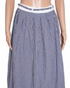 Maje Blue and White Checkered Skirt is rendered in a premium woven fabric featuring a timeless blue and white micro-gingham check that provides a textured. The design is defined by its voluminous A-line silhouette, which is achieved through deep, structured pleating at the high-rise waistband. A standout feature is the contrasting cream-colored waistband, which includes decorative buckled tabs for a tailored, utilitarian touch. Finished with a mid-length hemline and integrated hanger loops for easy storage.