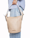 Michael Kors Shoulder Bag is expertly crafted from premium tan pebbled leather, offering a beautiful natural grain and a supple, durable finish. The bag is defined by its elegant hobo-inspired silhouette with a tapered base and clean vertical stitching details. Adding a touch of signature glamour, the front is accented with the Michael Kors logo in polished gold-tone lettering.
