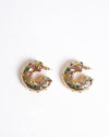 Oscar de la Renta Puff Earrings, designed to add a playful and luxurious touch to any look. The earrings feature a chunky, rounded "puff" or half-hoop silhouette crafted in polished gold-toned metal. They are exquisitely embellished with faceted Swarovski crystals in a vibrant, multi-color palette scattered across the surface.
