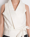 This structured waistcoat by Payal Khandwala blends minimalist tailoring with a bold contemporary edge. Crafted in crisp white fabric, it features a sharp V-neckline, sleeveless cut, and waist tie-up detail for a cinched silhouette. Perfect for layering over shirts, dresses, or styling solo as a statement piece.