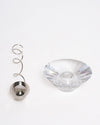 Finish: Polished Silver-tone or Chrome (Metal Accents/Base), or Clear Crystal (Central Pillar)