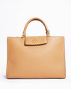 Tory Burch Britten Pebbled Leather Tote is a refined and timeless everyday bag crafted from luxurious, softly-grained pebbled leather in a warm beigel shade. Designed with clean lines and a structured silhouette, it features the iconic raised double-T logo on the front flap for an elegant signature touch.