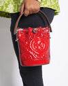 New Tory Burch Monogram Puffy Patent Leather Bucket Bag in Red