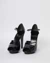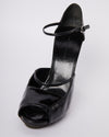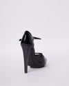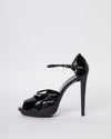 These Balenciaga heels are crafted from black patent leather and feature a striking strappy design with a sleek stiletto heel. The open toe and buckle closure ensure a secure fit, while the patent leather upper and stylish straps add a touch of sophistication.
