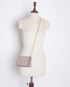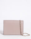 Valentino Garavani Shoulder Bag is expertly crafted from smooth, premium calfskin leather in a sophisticated dusty pink hue. The bag’s defining feature is the prominent oversized VLogo signature, which is tonal and seamlessly embossed into the front flap. Designed for effortless style, it features a structured rectangular body and a delicate gold-tone bijoux chain strap, allowing it to be worn comfortably on the shoulder or as a crossbody.