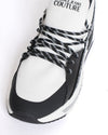 These New Versace Couture Dynamic Logo Men's Sneakers showcase a modern sock-knit construction that offers a comfortable, snug fit. Featuring the iconic Versace logo prominently printed on the side and heel, these low-top lace-up sneakers combine luxury branding with sporty style. Perfect for everyday wear, they blend high fashion with functional design for a standout look.