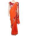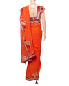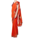 Pallavi Jaikisshan saree typically features intricate designs and rich fabrics, and pairing a pink velvet blouse with a silk orange saree would create a stunning contrast.