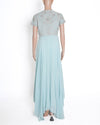 Pankaj & Nidhi Blue Kurta Set is a refined and elegant ensemble crafted in a soft powder blue hue. The kurta features a beautifully embroidered net yoke with intricate floral and sequin work that adds a touch of shimmer and sophistication. The flowing silk-blend lower panel drapes gracefully, paired with matching pants for a complete, polished look. Perfect for festive gatherings, day weddings, and special occasions, this pre-loved designer set offers timeless charm and comfort.