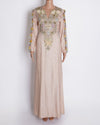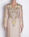Step into elegance with this stunning blush pink kurta by Payal Singhal, intricately embroidered in the signature Bagh style. Adorned with floral and paisley motifs using multicolor threadwork, sequins, and mirror embellishments, this kurta features full sleeves with playful pastel tassels along the sides for added charm. Crafted from a lightweight silk-blend fabric, it effortlessly blends traditional craft with modern flair—perfect for festive occasions or intimate celebrations.