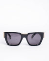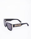 Philipp Plein Men's Sunglasses are a bold statement accessory inspired by rock-and-roll design. Featuring a classic square silhouette with a sleek black frame, these sunglasses are elevated by signature details such as the iconic skull logo in gold-tone metal, adding a touch of edgy luxury.