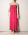 Bcbgmaxazria Bright Pink Strapless Maxi Evening Dress with corset lining and ruched detailing for the bust, and zip closure at the back.