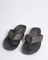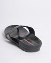 These Prada flip-flops offer a minimalist yet sophisticated take on casual footwear. While they exude a sense of understated luxury, the design features a thong strap, possibly crafted from a durable textile, and a comfortable sole. Subtle Prada branding is visible on the footbed, adding a touch of designer recognition. These flip-flops are a stylish option for warm weather, embodying Prada's sleek and modern aesthetic.