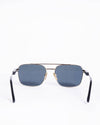 Prada Pilot Sunglasses, offering a refined, contemporary update on the classic aviator style. The sunglasses feature a structured, slightly squared-off lens shape set within a sleek polished gold-toned metal frame with a distinct double bridge. The design incorporates black acetate accents on the temples for comfort and contrast.