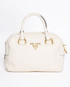 Prada White Saffiano Top Handle Satchel with Thick Shoulder Strap