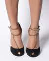 Gucci Black & Golden Heels with strap closure.