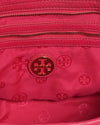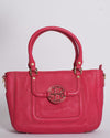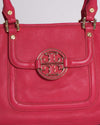 The Tory Burch shoulder bag exudes luxury and style, featuring the brand's iconic circular logo with the double-T emblem prominently displayed on the front flap. With a structured yet slightly relaxed silhouette, typical of a shoulder bag, it offers both elegance and practicality. The comfortable shoulder strap adds ease of wear, while the rich red leather enhances the bag's luxurious appeal. A flap closure ensures secure storage, making this bag a perfect blend of sophisticated design and functional security.