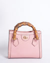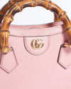 The Gucci Diana Mini Tote is a modern take on a classic 1991 design, crafted from luxurious leather with signature bamboo handles. It features removable neon leather belts, a suede-like microfiber-lined interior with an open pocket, and a detachable shoulder strap. Finished with iconic Double G hardware in antique gold, it seamlessly blends classic elegance with contemporary style. Versatile and sophisticated, it’s perfect for both casual outings and formal occasions, making it a timeless addition to any wardrobe.