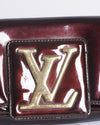 The Louis Vuitton Sobe Clutch is a stunning and elegant evening accessory, crafted from luxurious Vernis patent leather in a rich, glossy finish. This sleek clutch features a prominent gold-tone LV logo on the front flap, adding a bold statement of sophistication. The magnetic snap closure ensures secure yet easy access to your essentials, while the interior is lined with soft microfiber and includes a small pocket for organization. Perfect for formal events or nights out, this compact yet stylish clutch effortlessly complements any chic ensemble, making it a timeless addition to any luxury collection.
