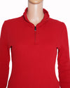 Ralph Lauren Active Top is meticulously crafted from a premium red technical-knit fabric, offering moisture-wicking properties and a comfortable stretch-fit. The design is defined by its versatile quarter-zip mock neck, featuring a durable metallic zipper with a high-contrast black and white pull-tab for ease of use. A standout feature is the oversized graphic interior branding.