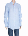 The Ralph Lauren Long Sleeve Shirt is crafted from lightweight, breathable linen and features a timeless blue and white vertical stripe pattern. Designed with a button-down collar and a button-front closure, it is subtly finished with the iconic Ralph Lauren Polo Player logo embroidered on the chest. A classic, versatile piece suitable for both casual and smart-casual styling.