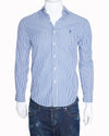 Ralph Lauren men’s shirt features classic vertical blue stripes that create a sharp, refined look suitable for both casual and semi-formal outfits. Crafted from soft, breathable fabric, it offers a comfortable fit with the polished tailoring Ralph Lauren is known for. A timeless wardrobe essential that pairs effortlessly with denim, chinos, or tailored trousers.