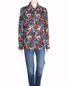 Color: Brown with multicolour abstract print