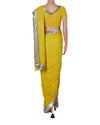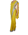 Lime green Rina Dhaka embroidered saree with silver sequin border.