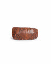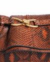 Roberto Cavalli Snakeskin Leather Clutch is rendered in premium genuine snakeskin in a sophisticated burnt orange and copper palette, The design is defined by its contemporary gathered "bow" silhouette. A standout feature is the ornate textured gold-tone hardware, most notably the signature sculptural clasp that anchors the front with brilliant luster a definitive mark of archival Roberto Cavalli luxury.