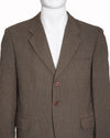 Saint Laurent Beige Checkered Blazer is rendered in a premium mid-weight wool or wool-blend fabric, featuring a meticulous micro-checkered pattern in earthy tones of beige, brown, and charcoal grey that creates a rich, textural appearance. A standout feature is the precision of the tailoring, evidenced by the functional buttoned cuffs and two spacious front flap pockets that provide both utility and a refined aesthetic. Finished with a smooth interior lining for effortless layering and a clean,