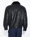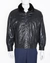 Saint Laurent Leather and Fur Jacket is a luxurious and timeless outerwear piece. The jacket is crafted from a high-quality black leather, with a plush fur collar that adds a touch of classic glamour. The silhouette is a bomber style with a front zip closure.