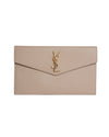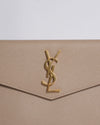 The Saint Laurent Uptown Pouch is a sleek and sophisticated accessory that embodies the brand's signature elegance. Crafted from premium leather, this slim envelope-style pouch features the iconic YSL logo in gold-tone hardware on the front flap. Perfect for carrying essentials like your phone, cards, and lipstick, it can be used as a clutch for evenings out or slipped into a larger bag for day-to-day organization.