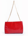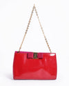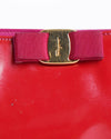 Salvatore Ferragamo Patent Leather Vara Bow Clutch is a glamorous and timeless evening accessory. The clutch is crafted from high-shine red patent leather, offering a bold and elegant look. Its classic flap silhouette is beautifully accented with the brand’s signature Vara bow and a polished gold-toned logo plaque closure across the front, making it a sophisticated statement piece for special occasions.