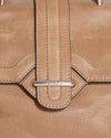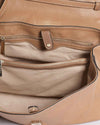 Tod’s Light Brown Passante Patta Media Bag blends chic polish with a touch of slouch. Crafted from textured leather, it features a flap with clasp closure and a central leash lock. The beige fabric-lined interior is divided into two compartments with a central zipped pocket and an additional zipped pocket. It comes with a dustbag, though the shoulder strap is missing. There’s light corner wear, subtle scratches on the leather and underside of the flap, and some scuffing on the gold hardware.