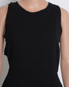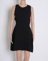 Sandro Black Mini Dress. This sophisticated little black dress features a flattering sleeveless silhouette with a slightly flared skirt, offering a timeless and elegant look. The design is elevated by a unique cut-work at the back of the neckline, adding a subtle touch of modern edge.