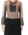 This dress boasts intricate lace detailing that envelops the entire silhouette, creating a mesmerizing play of texture and transparency. The full sleeves add a touch of romanticism, while the full-length cut enhances its dramatic appeal. Perfect for evening affairs and special occasions, this dress exudes confidence and grace, promising to make a statement wherever you go. Embrace the artistry of lace and elevate your wardrobe with this enchanting piece that embodies effortless glamour and timeless beauty.