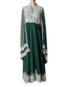 Shantanu Goenka dark green anarkali set with machine embroidery, beadwork, and cape sleeves. It comes with matching pants.