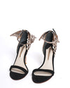 The Sophia Webster Evangeline Ankle-Strap Heels in Black and Rose Gold Suede perfectly combine elegance with playful artistry. Crafted from luxurious suede, these heels feature a sleek ankle strap for added support and style. The standout detail is the signature laser-cut wing embellishments in rose gold, which add a whimsical and eye-catching touch. Ideal for special occasions or elevating any outfit, these heels embody Sophia Webster’s unique blend of creativity and sophistication.