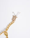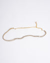 The Tarun Tahiliani Jeweled Kamarbandh appears to be crafted with a gold-toned metal chain as its base. It is intricately embellished with clear, round-cut jewels or crystals that run along a significant portion of the chain's length. The overall impression suggests a delicate yet opulent piece.