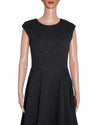 Ted Baker Black Floral Jacquard Sleeveless Fit-and-Flare Dress features an embossed floral and damask pattern that adds depth and subtle sheen to its monochrome palette. Designed with a cinched waist and structured A-line skirt, it is finished with a high rounded neckline and capped-sleeve effect for a polished silhouette. A versatile pre-loved piece suitable for both professional and evening wear.