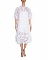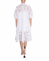 Ted Baker Button-Detail Tiered Dress is rendered in a premium white floral lace fabric, featuring an intricate, all-over botanical pattern that provides a light and airy feel. A standout feature is the functional button-front placket, which adds a touch of vintage-inspired charm to the structured bodice. Finished with a graceful tiered skirt that adds beautiful volume and movement.