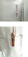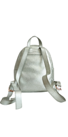 Preloved Ted Baker Silver Backpack is a stylish backpack from Ted Baker is crafted from leather. It features a fabric-lined interior, a top-zip closure. The simple design makes it ideal for everyday use. It has light scuffs on the edge and white spots along the sling, visible marks on the lining.