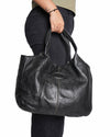 Tod's black leather shoulder tote bag features a sleek and structured silhouette crafted from supple black leather. It is accented with subtle contrasting stitching on the body and handles, offering a refined and practical design. The front is distinguished by the signature Tod's oval logo patch, reflecting the brand's heritage of Italian craftsmanship and understated luxury. With its spacious interior and comfortable dual leather straps, this versatile piece is designed for everyday functionality and timeless style.
