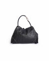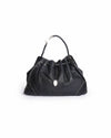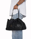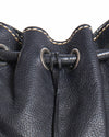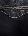 Tod’s Black Pebbled Leather Top-Handle Bag is rendered in premium pebbled calf leather in a timeless black. A standout feature is the polished silver-tone hardware, specifically the signature "T" engraved medallion and the industrial-chic swivel clasp on the handle a definitive mark of archival Tod’s luxury that captures the light with brilliant luster. Finished with a slender rolled leather handle, a secure drawstring closure.