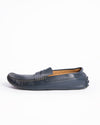 Tod's penny loafers are a classic and versatile shoe for the modern man. Crafted from soft, dark blue pebbled leather, they offer a durable yet luxurious texture. The traditional penny loafer silhouette is defined by a classic penny strap across the vamp, and the shoes are finished with a comfortable rubber sole for everyday wear.