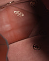 Tod’s Leather Goldtone Studded ‘Secchiello’ Bucket Bag in brown blends sophisticated craftsmanship with a modern, bold aesthetic. Crafted from luxurious smooth leather, the bag is adorned with gold-tone stud embellishments that add a chic contemporary edge. The relaxed silhouette is secured with a drawstring closure, while the adjustable leather shoulder strap provides comfort and versatility for everyday use. Stylish yet practical, this Tod’s bucket bag is the perfect choice for those who appreciate timeless elegance with a striking touch.