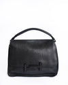 Tod's Double T Flap Handbag, showcasing fine Italian leatherwork. The bag is crafted from high-quality leather featuring a distinctive textured-embossed finish in a rich Black hue. The fold-over flap silhouette is secured by the prominent Tonal Double T Metal Clasp, which provides a sleek, monochromatic, and recognizable logo accent.