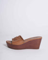 Tory Burch block heels in brown offer a blend of comfort and classic style, well-suited for the climate in Mumbai. Crafted from rich brown leather, they likely feature a supportive block heel, providing stability for navigating the city. The design often incorporates the iconic Tory Burch logo as a subtle yet recognizable detail on the upper strap. Their open design makes them ideal for the warmer weather, offering breathability while maintaining a polished look