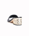 Tory Burch Everly Block Heels In Black With Gold Tone Accent