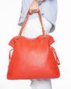 Tory Burch Marion Leather Slouchy Tote Bag is a chic everyday carry crafted from rich, pebbled red leather that offers both style and effortless practicality. Its relaxed silhouette is accented with elegant whipstitch detailing along the top edge, complemented by gold-tone chain-link shoulder straps that add a touch of sophistication. The front features an embossed Tory Burch logo, enhancing its refined yet understated look.